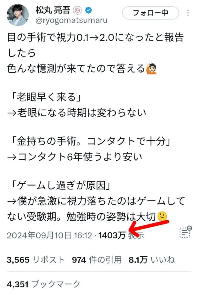 — hiro@新宿近視クリニック 友達紹介 割引 クーポン(ICL/レーシック) (@hiro_doit) October 9, 2024