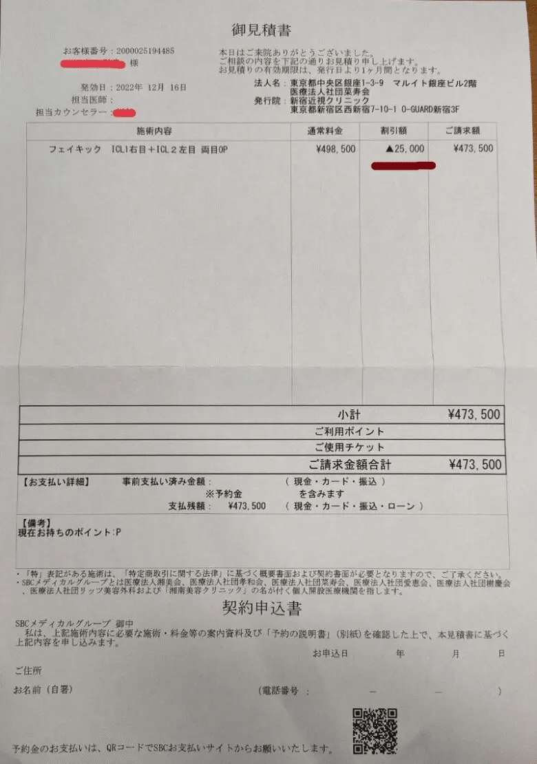 ICLは私が最もお勧めできる視力矯正手術です。私はICLを施術して0.04⇨2.0に上がりました。SBCの系列である『新宿近視クリニック』ではSBCポイントや楽天ポイントが貯まり価格も安く抑えられています。