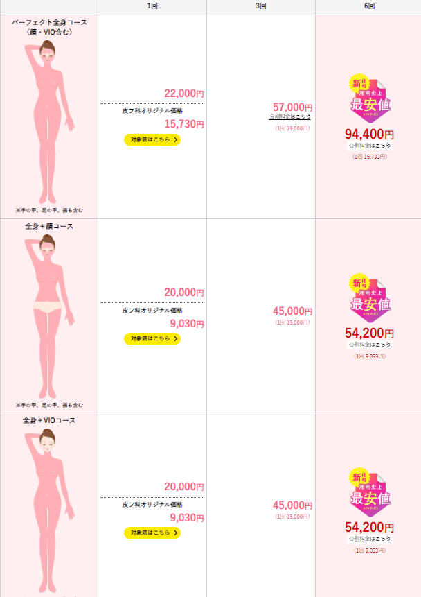 パーフェクト全身脱毛(顔・VIO含む) 6回94,400円